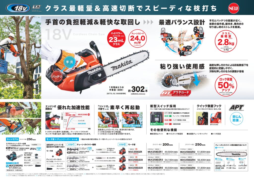 マキタ 18V充電式チェンソー MUC258Dが発売されました!
