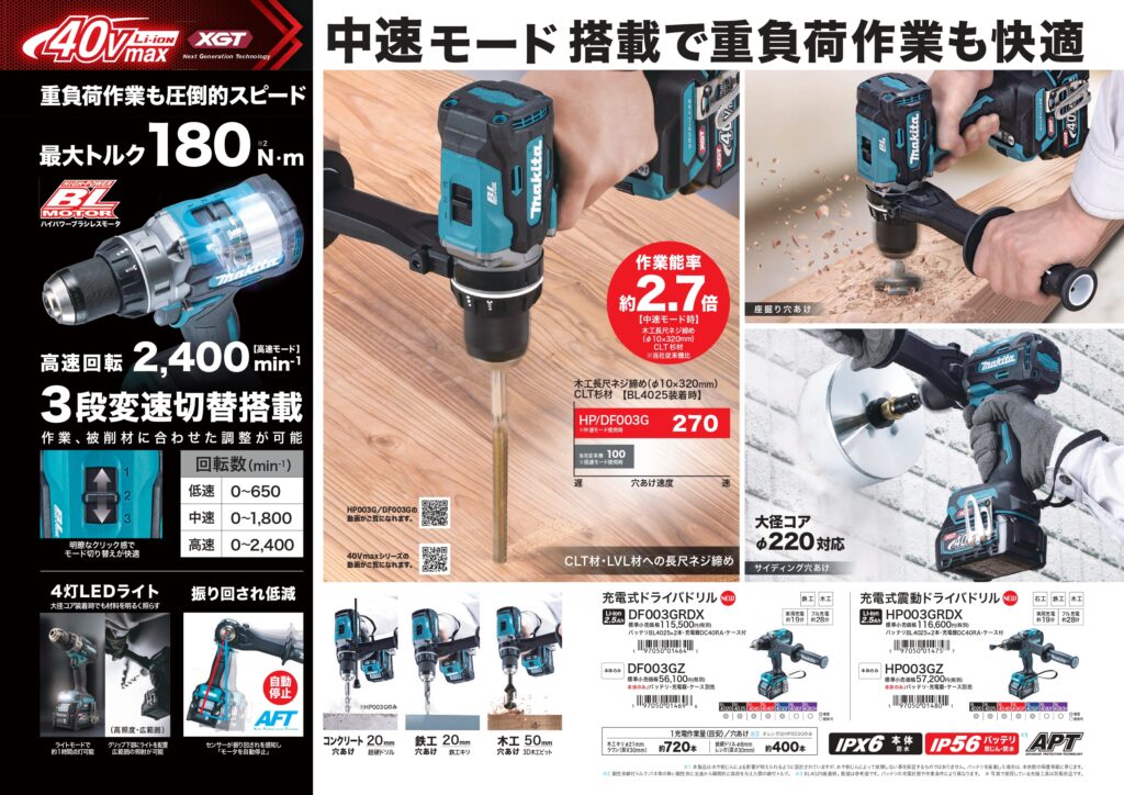 🆕マキタ 充電式ドライバドリル 投稿者 tominagakanamonohanbaibu投稿日:2025年10月2日2025年9月29日マキタ 40Vmax充電式ドライバドリル DF003G・充電式震動ドライバドリル HP003Gが発売されました!