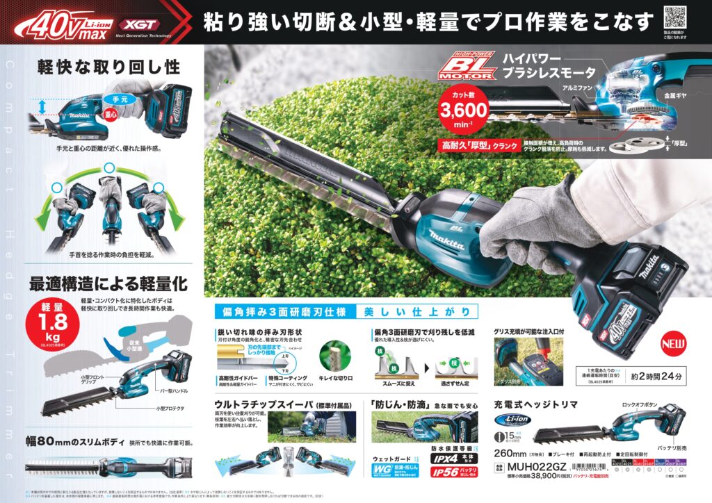 🆕マキタ 充電式ヘッジトリマ 投稿者 tominagakanamonohanbaibu投稿日:2026年3月5日2026年3月5日マキタ 40Vmax充電式ヘッジトリマ MUH022Gが発売されました!