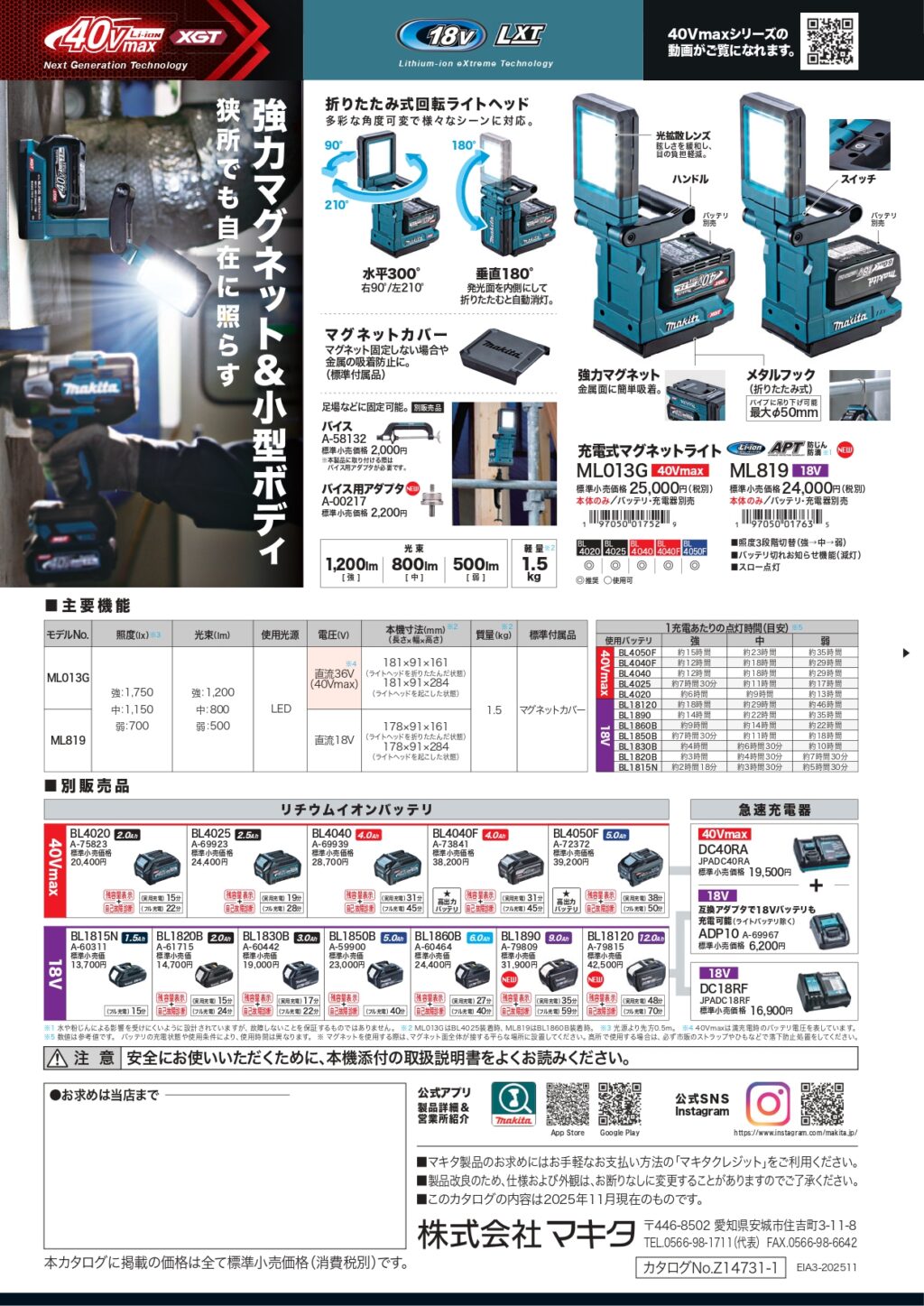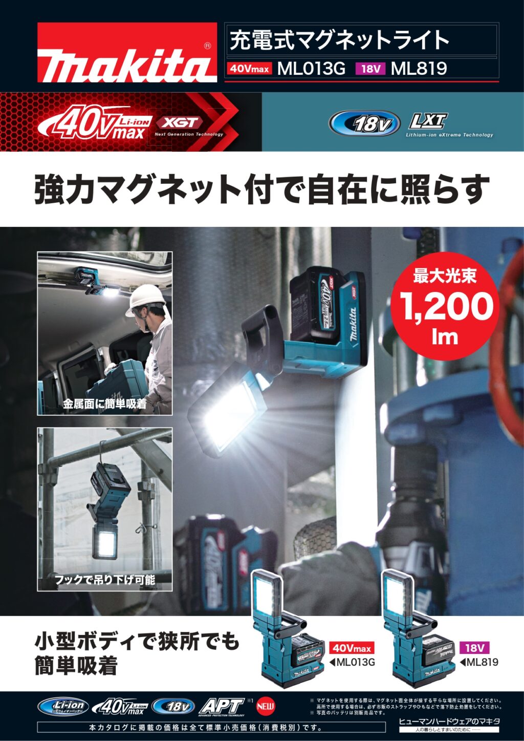 🆕マキタ 充電式マグネットライト 投稿者 tominagakanamonohanbaibu投稿日:2025年12月22日2025年12月12日マキタ 40Vmax・18V充電式マグネットライト ML013G・ML819が発売されました!