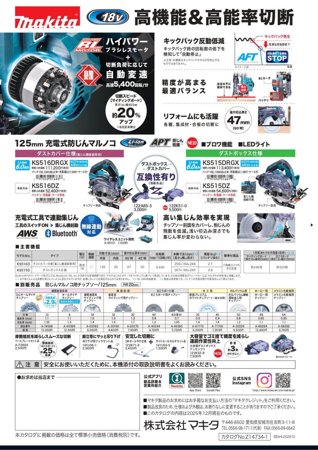 🆕マキタ 充電式防じんマルノコ 投稿者 tominagakanamonohanbaibu投稿日:2025年12月25日2025年12月16日マキタ 18V充電式防じんマルノコ KS515・516Dが発売されました!