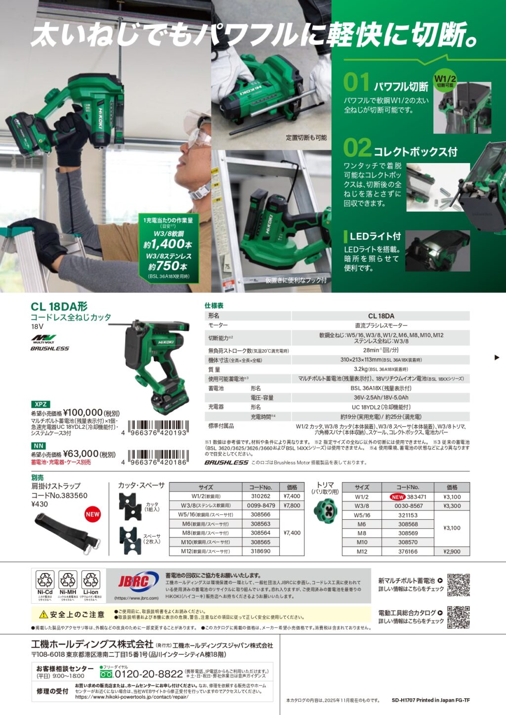 🆕HiKOKI コードレス全ねじカッタ 投稿者 tominagakanamonohanbaibu投稿日:2026年1月19日2026年1月16日HiKOKI コードレス全ねじカッタ CL18DAが発売されました!